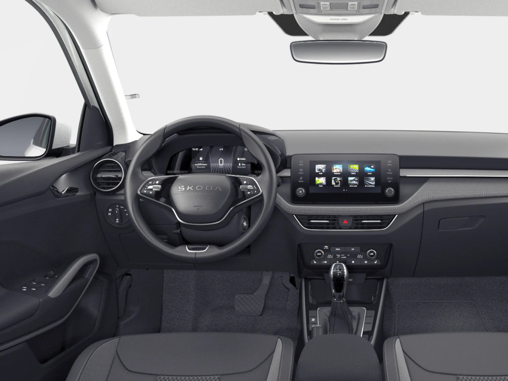 • , 15" Rotare Aero stříbrná, 6 reproduktorů, Asistent dálkových světel, Asistent rozjezdu do kopce, Asistent udržování jízdního pruhu, Automatické stmívání pro vnitřní zpětné zrcátko, Bederní opěra, Bezdrátový SmartLink, Bi-LED přední světlomety, DAB, Dekorativní prahové lišty, Deštník ve dveřích řidiče, Dešťový senzor, Detekce rozptýlení a únavy, Dvouzónový Climatronic, El. sklápění pro vnější zrcátka s aut. stmíváním u řidiče, Elektrické ovládání oken vpředu a vzadu, Front Assist, Infotainment Media 8", Klíček pro systém zamykání s dálkovým ovládáním, Kontrola tlaku v pneumatikách, Kožená hlavice řadící páky, Multifunkční vyhřívaný kožený volant, Osvětlení zavazadlového prostoru, Parkovací senzory vzadu, Rezervní kolo, Rozšířená a prediktivní ochrana chodců a cyklistů, Startování tlačítkem, Střední loketní opěrka vpředu, Sunset, Světelný senzor, Tempomat s omezovačem rychlosti, Virtuální kokpit mini 8", Vyhřívání předních sedadel